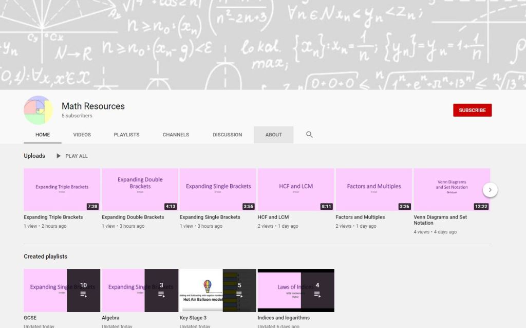 Video lessons on the Youtube channel Math Resource:
